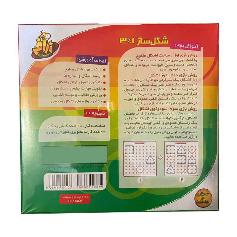 اقلام همراه :صفحه کار ، 20 عدد کش رنگی ، 40 عدد کارت تصویری ، آموزشی دو رو